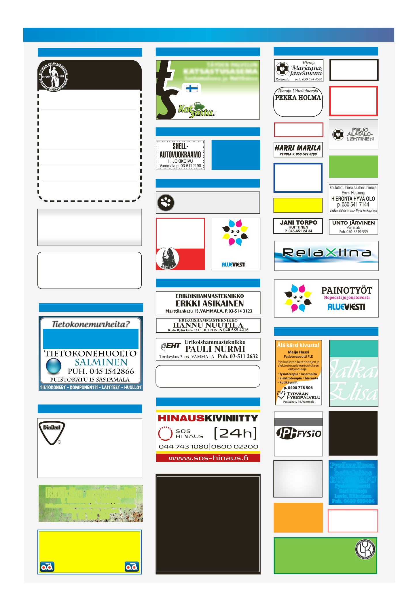 Sorkkistentie 11 EURA p. (02) 865 4636